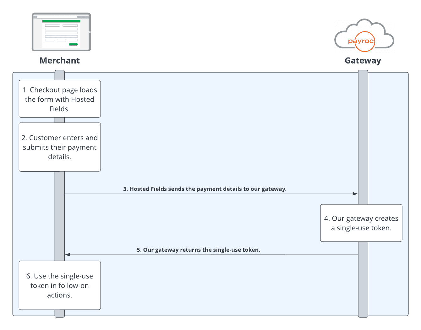 Use our Hosted Fields to add payment fields to your checkout page. You control the look and feel of the fields, but we host the fields to make them more secure. By integrating with Hosted Fields, you allow the merchant to: